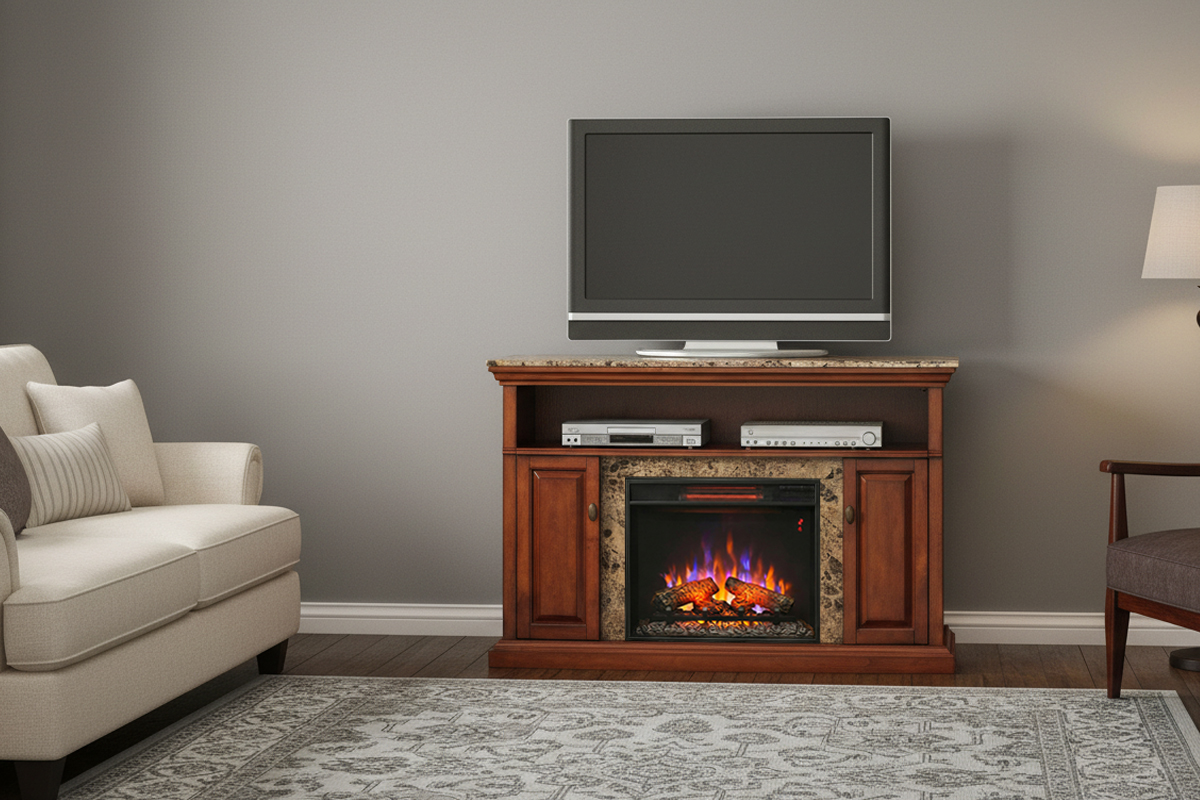 暖炉棚は、メディアコンソールとしてお使い頂くのもオススメです。天板と本体周りのマーブルの組み合わせが豪華な雰囲気です。