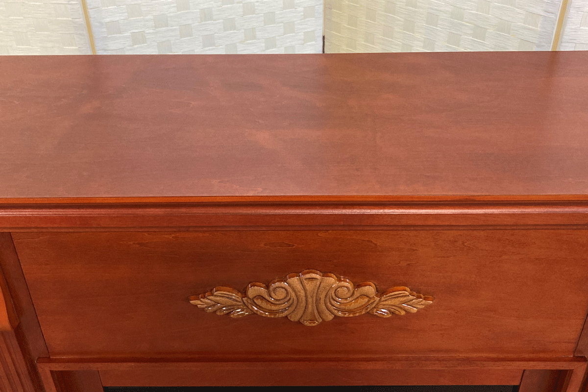 伝統的なデザインに繊細な彫刻が特徴の小さめの暖炉棚です。