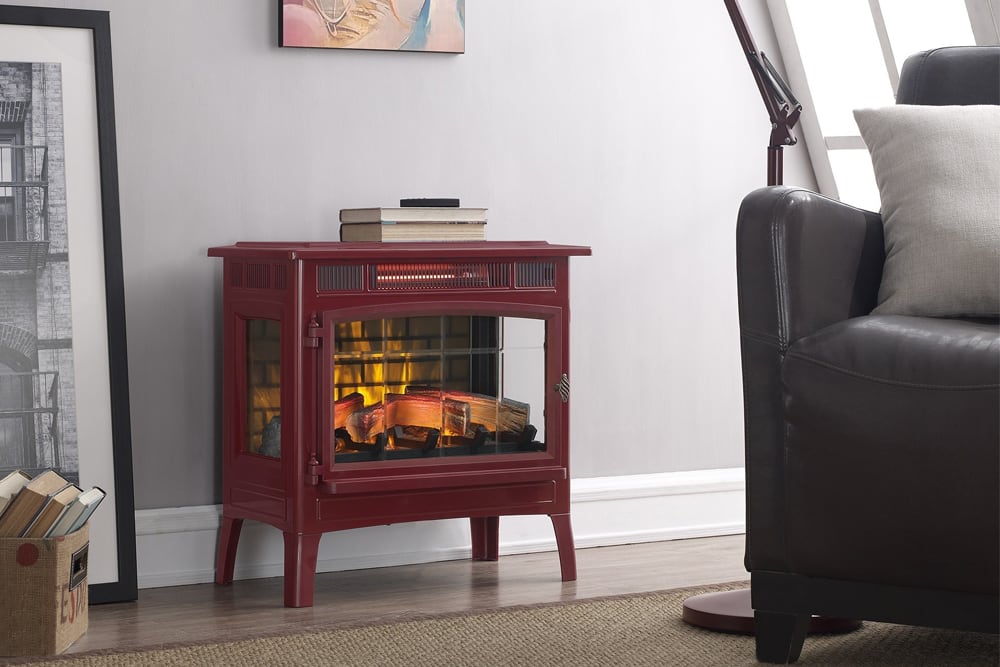 こちらの商品は、温風が前面から出るので、設置場所を選ばず、コンセントにさしていただくだけで、すぐにご使用いただけます。前面とサイドがガラス張りなので、様々な角度からお楽しみいただけます。
