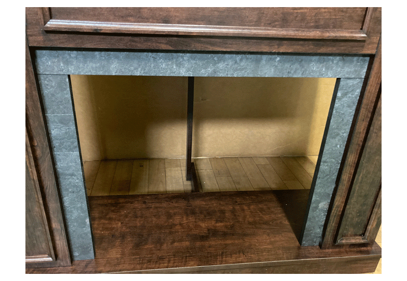 暖炉棚の背面は、フラットとコーナーの兼用タイプ。お部屋にあわせて、お好きな形でお使い頂けます。