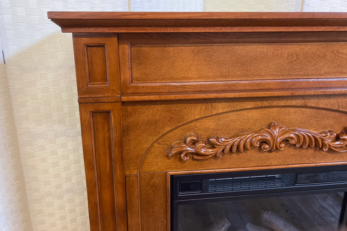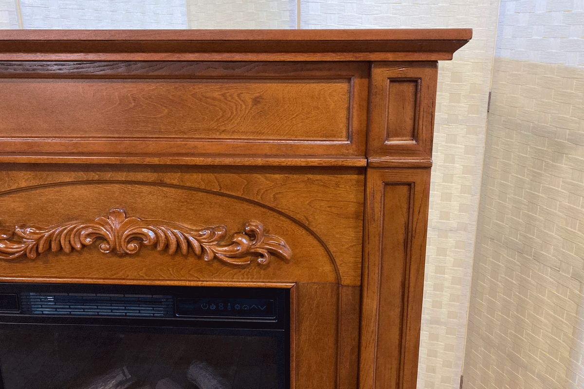 伝統的なデザインに繊細な彫刻が特徴の暖炉棚です。